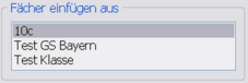 Möchten Sie bestehende Fächer aus anderen Klassen einfügen, so wählen Sie hierzu einfach aus der Liste rechts die betreffende Klasse aus.