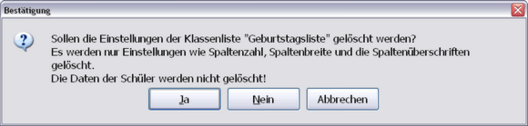 Bestätigen Sie zum Löschen der Klassenliste dieses Dialogfenster mit "Ja". |