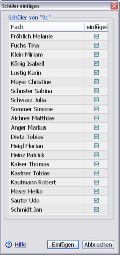 Wählen Sie nun die Schüler aus, die Sie in die versetzte Klasse übernehmen möchten. Neue hinzugekommene Schüler tragen Sie ggf. im darauf folgenden Dialogfenster (siehe auch Neue Klasse anlegen) ein. |