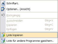 Grundsätzlich gibt es zwei Methoden, eine Liste aus der NotenBox in ein anderes Programm zu übernehmen. Sie können eine Liste (übrigens auch eine Klassenliste) in die Zwischenablage kopieren und in einem anderen Programm wieder einfügen. Eine zweite Möglichkeit stellt das Speichern einer Liste in einer Datei dar, die Sie anschließend mit einem anderen Programm weiterverarbeiten können.