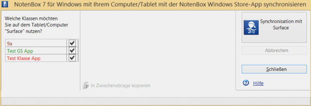 Synchronisation NotenBox 7 (für Windows oder unter macOS) mit NotenBox Windows-App (Windows 10, Windows 8.1 Tablets/Notebooks)