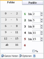Wählen Sie falls nötig die Registerkarte "Fehler" aus und tragen Sie zunächst die Fehlerzahl ein, ab der die Note 6 vergeben wird (z. B. 15).
