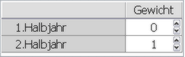 Ist diese Option gewählt, so können Sie zusätzlich jedes der beiden Halbjahre mit einem individuellen Faktor gewichten. |