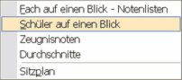 Schüler auf einen Blick Verwenden Sie diese Liste um einen Überblick über alle Noten eines bestimmten Schülers zu erhalten. Diese Funktion ist besonders nützlich zur Vorbereitung eines Elterngesprächs. |
