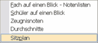 Sitzplan Verwenden Sie diese Funktion, um bis zu drei Sitzpläne oder eine Fotoliste der aktuell ausgewählten Klasse zu erstellen und auszudrucken. |