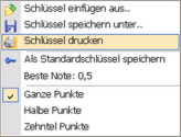 Um einen eingegebenen Punkte- oder Fehlerschlüssel auszudrucken, verwenden Sie die Schaltfläche "Optionen" und anschließend "Schlüssel drucken". |