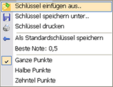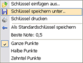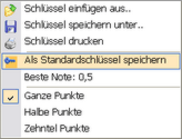 Um einen selbst eingegebenen Punkte- oder Fehlerschlüssel als Voreinstellung für neue Arbeiten festzulegen, verwenden Sie die Schaltfläche "Optionen" und hier die Funktion "Als Standardschlüssel speichern". Bestätigen Sie das anschließende Dialogfenster mit "OK", um den von Ihnen definierten Noten- oder Fehlerschlüssel als Standardeinstellung für alle neuen Arbeiten festzulegen.