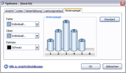 Das Erscheinungsbild des Notenspiegels, der in verschiedenen Listen angezeigt wird, können Sie in der Registerkarte "Notenspiegel" anpassen.
