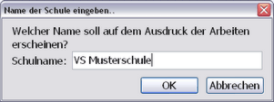Tragen Sie im entsprechenden Eingabefeld den Namen Ihrer Schule ein und bestätigen Sie durch einen Klick auf die Schaltfläche "OK".