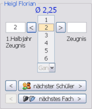 Mit den Schaltflächen "nächster Schüler" und "nächstes Fach" können Sie einfach und bequem weiter blättern bzw. mit den korrespondierenden Schaltflächen zurück blättern.