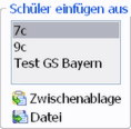 Die NotenBox bietet Ihnen auch die Möglichkeit, Schüler von einer bereits vorhandenen Klasse zu übernehmen. Wählen Sie dazu im Feld "Schüler einfügen aus" die Klasse aus, von der Sie die Schüler übernehmen möchten.