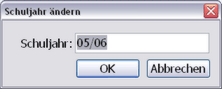 Falls erforderlich können Sie für jede Klasse individuell das Schuljahr ändern. Wählen Sie dazu zunächst die betreffende Klasse über das Auswahlfeld der Symbolleiste aus und rufen Sie danach den Menüpunkt "Klasse" > "Schuljahr ändern.." auf. Tragen Sie nun das gewünschte Schuljahr für die gewählte Klasse ein. |